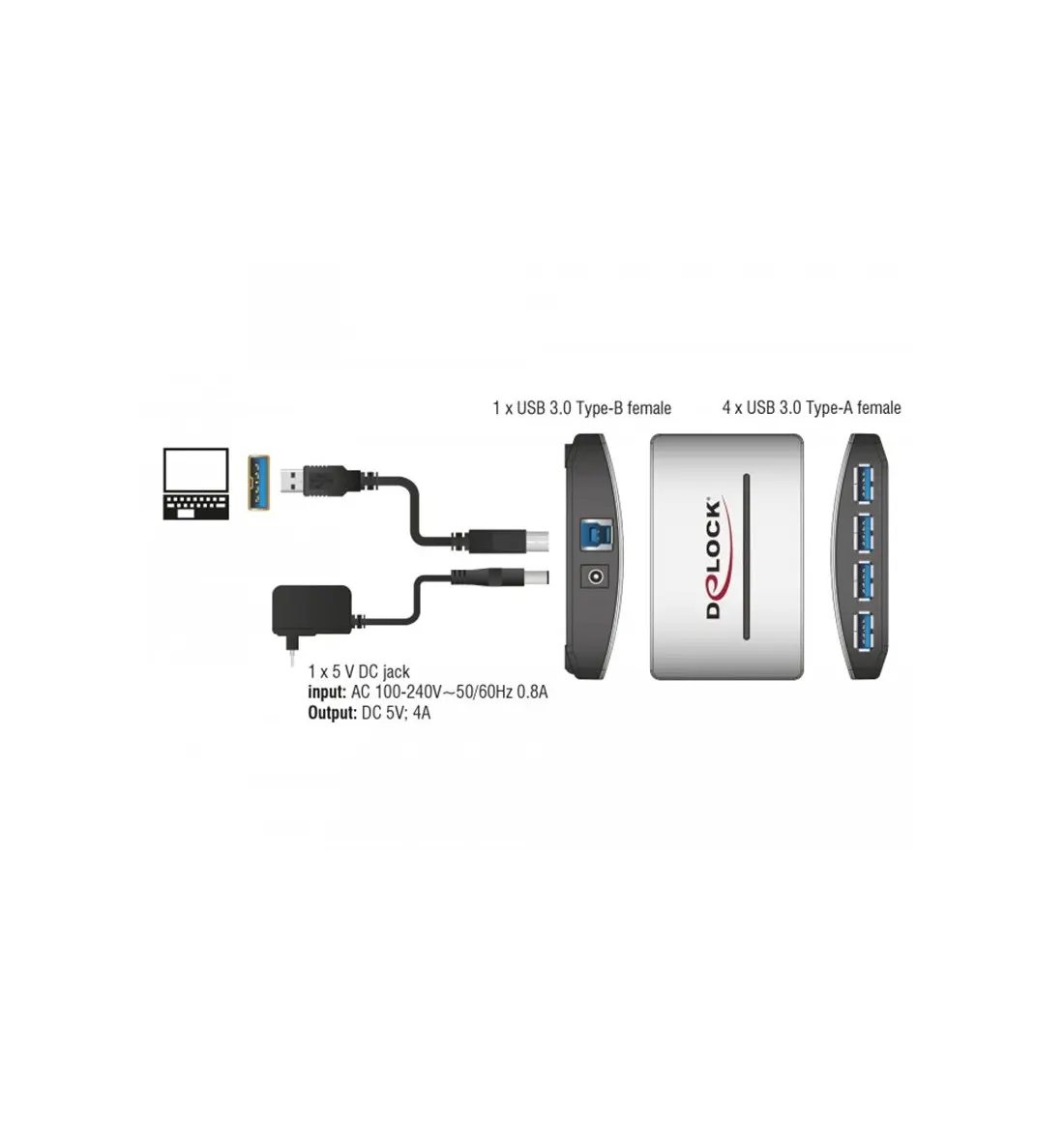 The external USB 3.0 hub expands your PC or laptop by 4 additional USB 3.0 ports. You can connect different USB devices such as docking stations, card readers, external enclosures etc. to the hub.