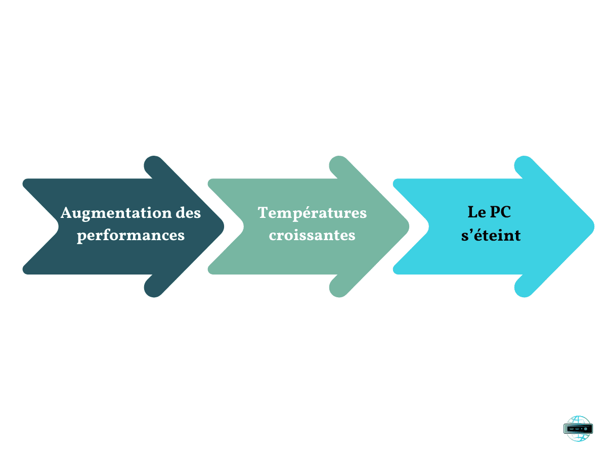 Exactement. Pendant que tu travailles sur un projet important ou que tu joues à ton jeu préféré, lorsque le PC atteint des températures élevées, il se protège en s’éteignant, afin de ramener la température à l’intérieur à des valeurs acceptables.