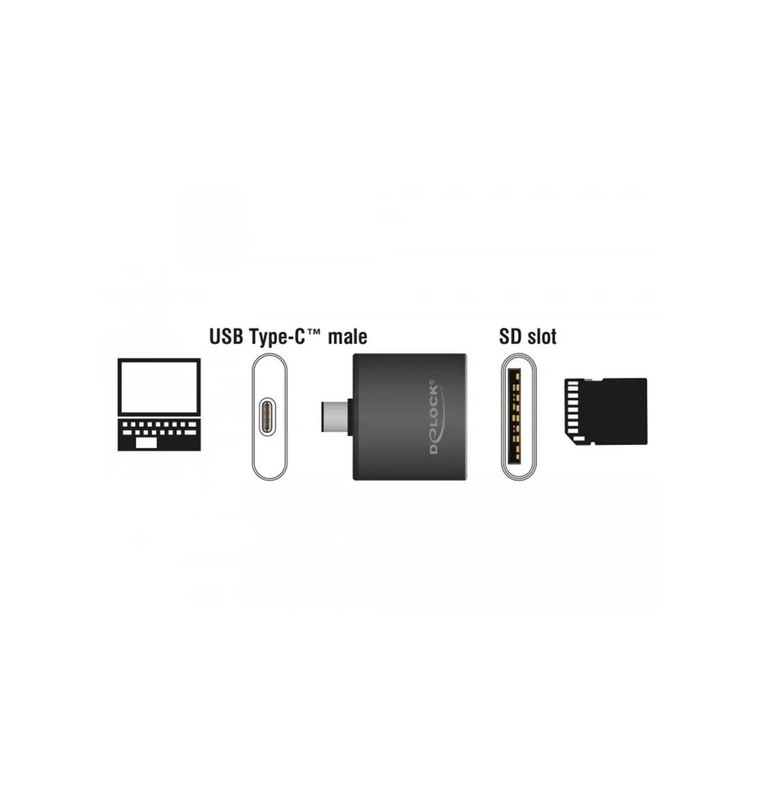 Questo lettore di schede a singolo slot Delock legge e scrive schede di memoria SD e MMC. Può essere collegato a una porta USB Type-C™ di un computer, tablet o smartphone. Le schede di memoria SD UHS-II supportate consentono un trasferimento dati rapido.