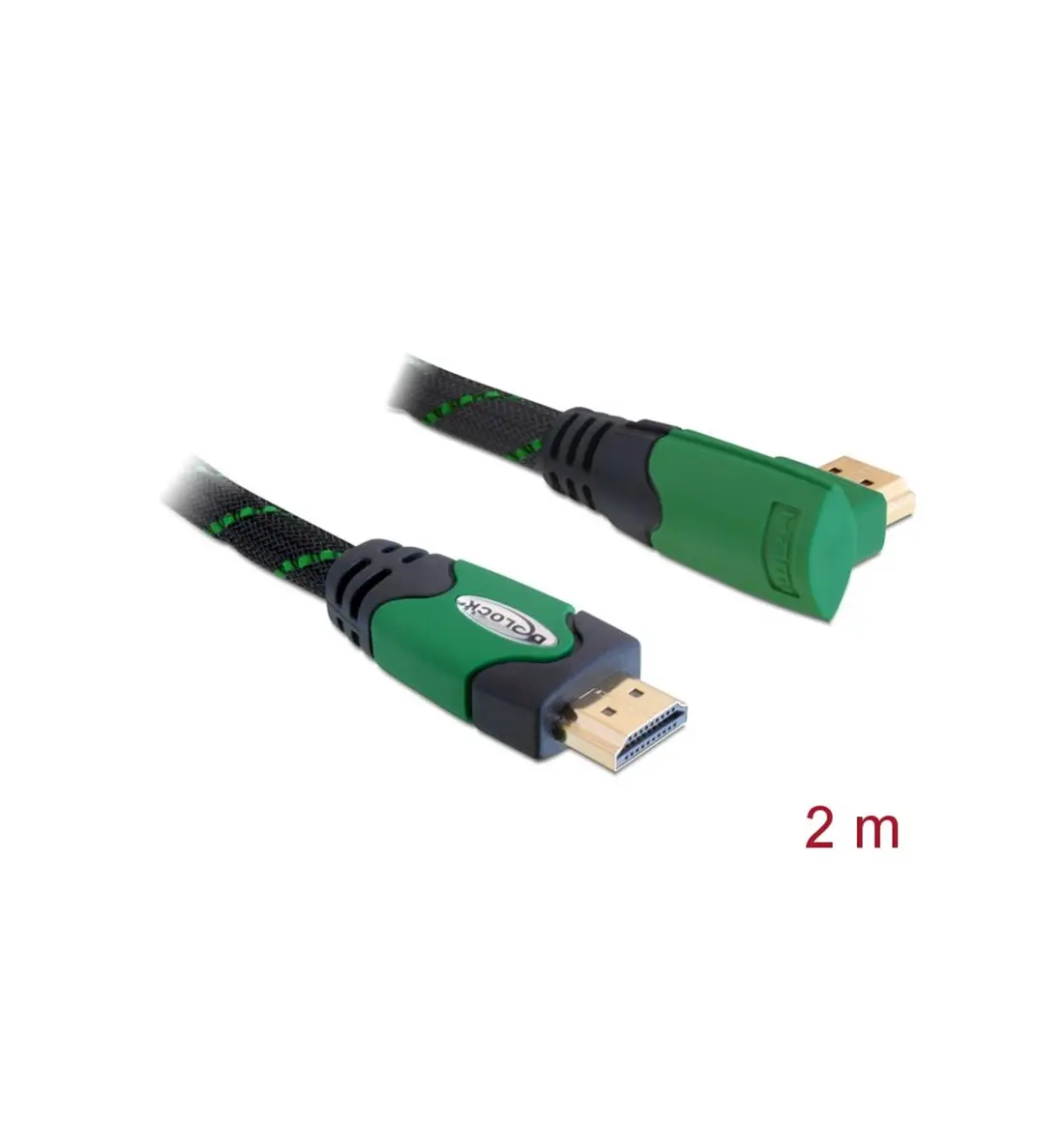 This High Speed HDMI with Ethernet cable by Delock complies with the latest HDMI standard and combines fast data transfer as well as audio-/ video- and Ethernet connection. Thus you can connect e.g. your PC or o DVD / Blu-ray drive to a monitor or TV. The angled connector helps to reach also a HDMI port which is difficult to access. The HDMI-A interface is downwards compatible to its forerunners and enables you to use your existing devices.