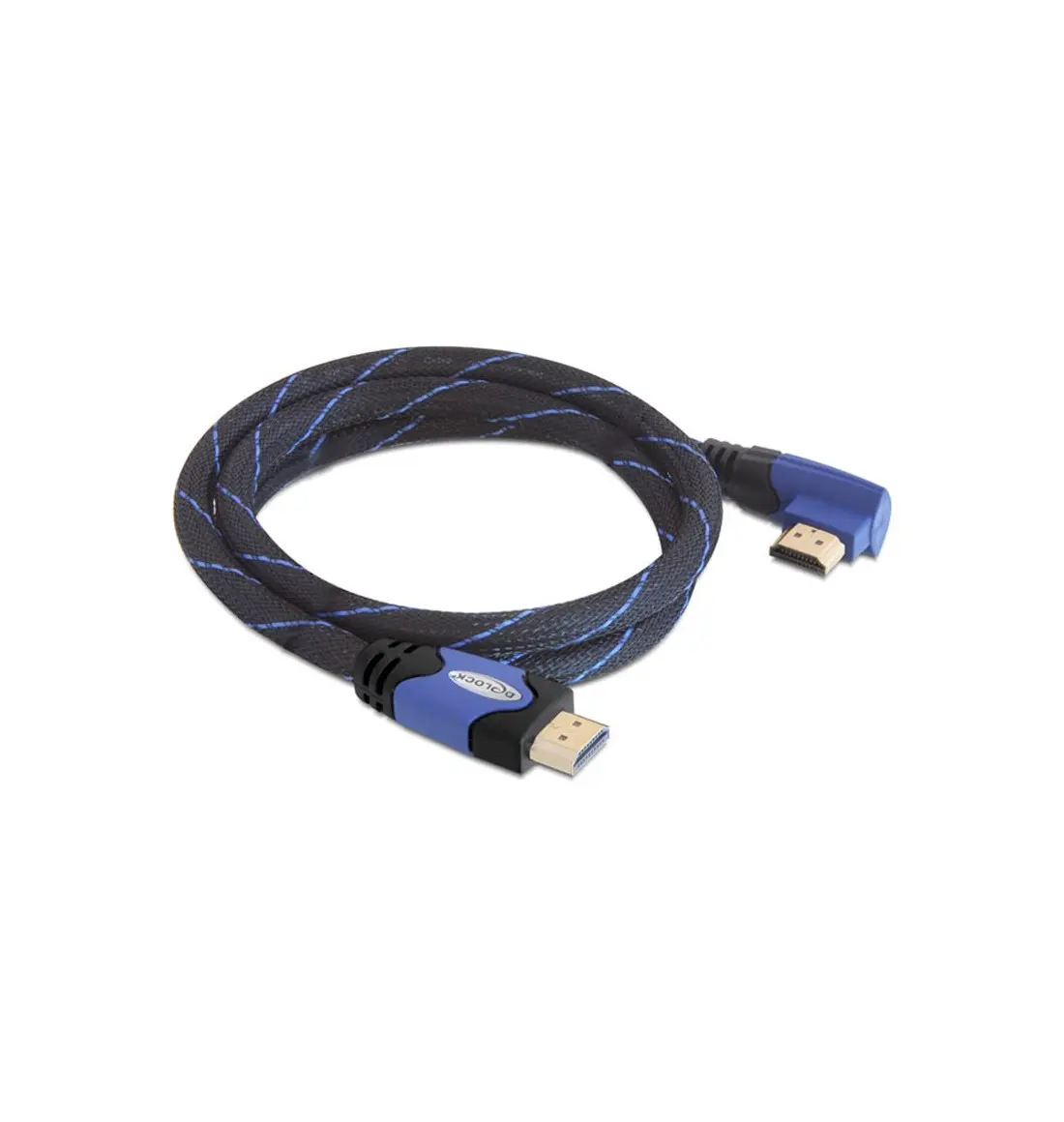This High Speed HDMI with Ethernet cable by Delock complies with the latest HDMI standard and combines fast data transfer as well as audio-/ video- and Ethernet connection. Thus you can connect e.g. your PC or o DVD / Blu-ray drive to a monitor or TV. The angled connector helps to reach also a HDMI port which is difficult to access. The HDMI-A interface is downwards compatible to its forerunners and enables you to use your existing devices.